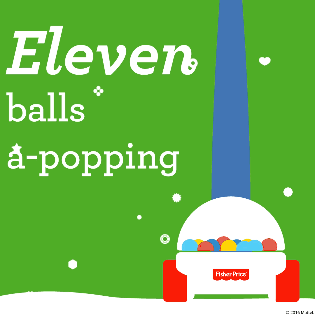 For the 2016 Holiday season, my team thought up the idea to do an Instagram campaign where we break down the song, '12 Nights of Christmas". These posts ranged from animations to stills wherein both cases we changed the lyrics to pertain more to Fisher-Price and its products. Below are the three I animated.